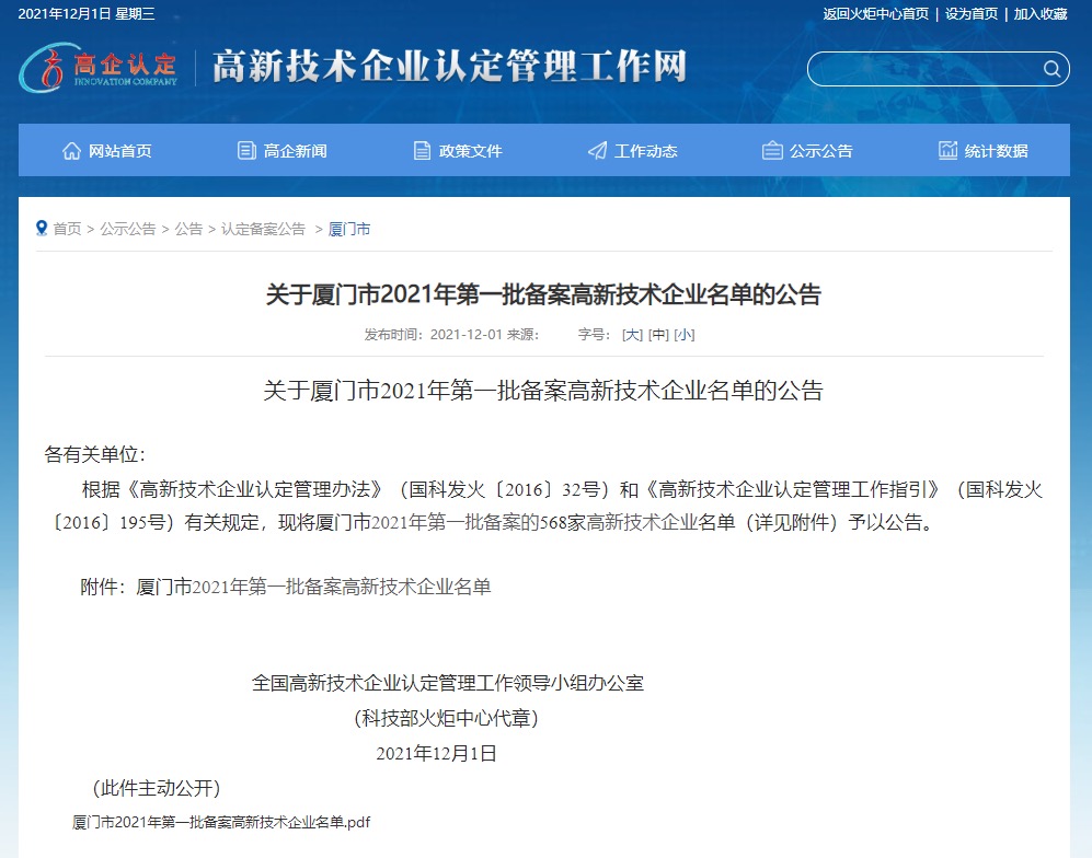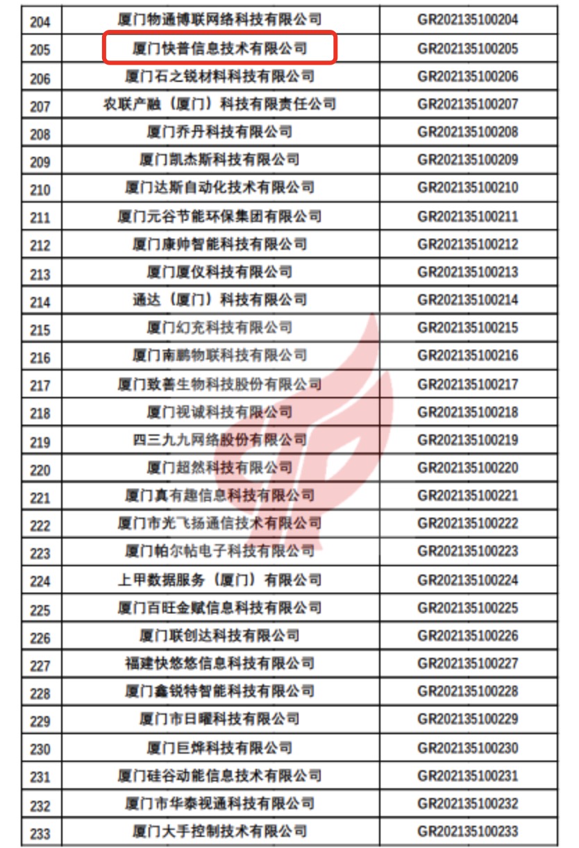 自接到廈門市科技局發(fā)出的高新技術(shù)企業(yè)申報(bào)通知后,廈門快普踴躍報(bào)名,積極配合申報(bào)工作,認(rèn)真準(zhǔn)備申報(bào)材料。經(jīng)合規(guī)性審查、專家評(píng)審、市高新技術(shù)企業(yè)認(rèn)定管理辦公室聯(lián)合審核,廈門市上報(bào)的第一批備案國家級(jí)高企名單在國家高新技術(shù)企業(yè)認(rèn)定管理工作網(wǎng)上公示,廈門快普憑借穩(wěn)健的經(jīng)營表現(xiàn)和先進(jìn)的技術(shù)實(shí)力位列榜單,并獲得正式批復(fù)!