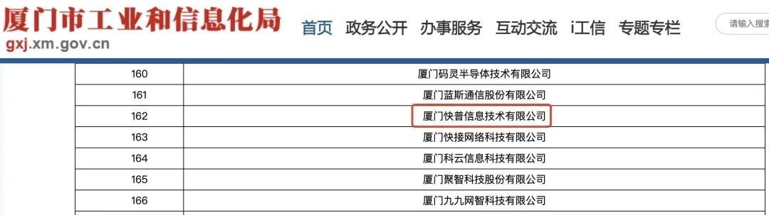 4月19日,廈門市工業(yè)和信息化局正式發(fā)布《2023年專精特新中小企業(yè)第一批認定名單》,經專家評審與綜合評估,快普成功獲得廈門市“專精特新”中小企業(yè)認定。